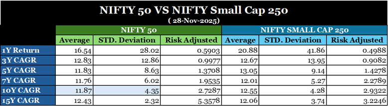 Key Takeaway Despite the current 1-year dip of -5.55%, the NIFTY Smallcap 250 continues to exhibit one of the strongest multi-year compounding stories in Indian equities. The 5-year and 7-year CAGRs are currently near their all-time peaks, underlining that smallcaps reward investors who can withstand short-term turbulence.