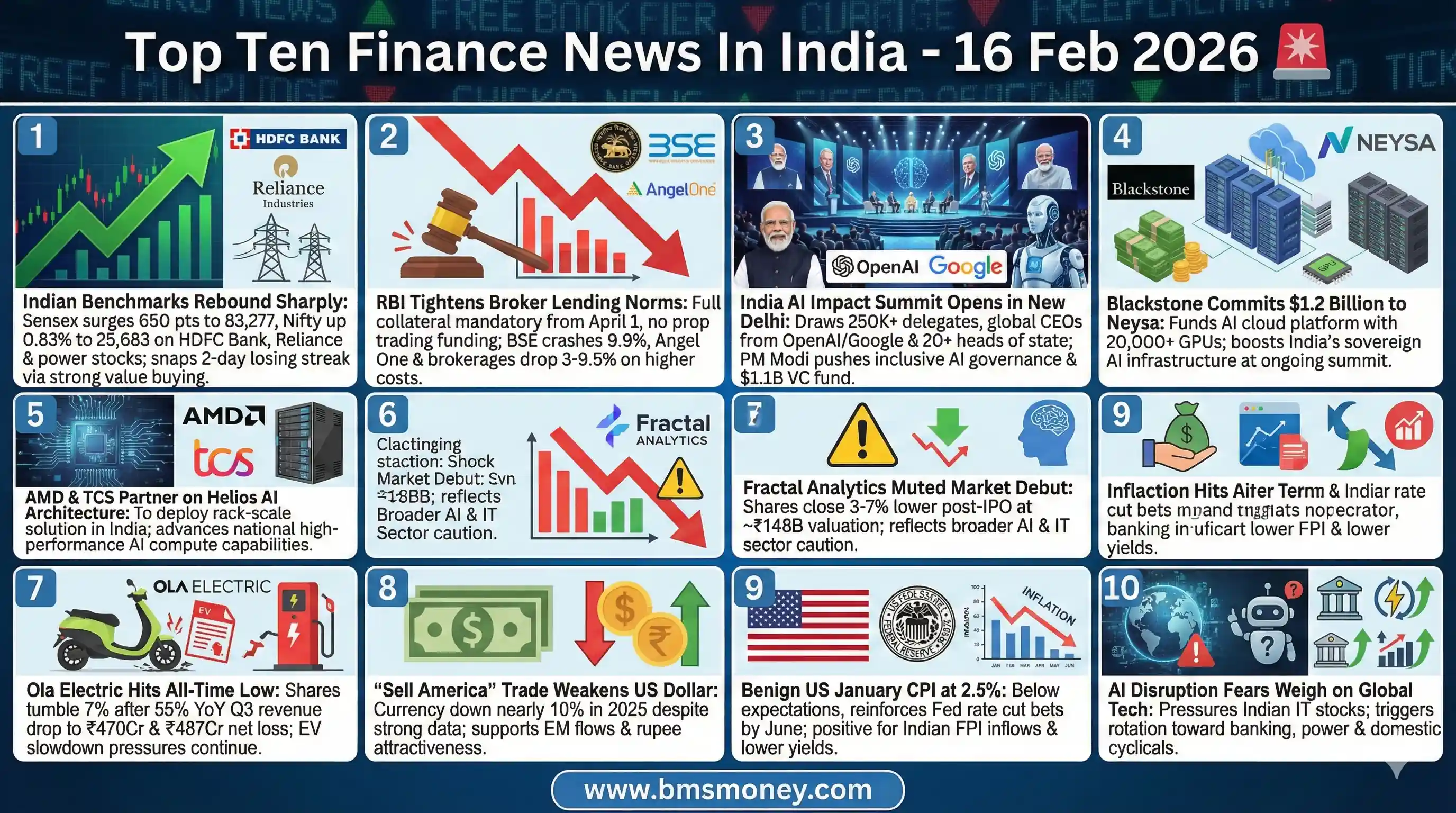 Indian equities staged a strong recovery on February 16, 2026, driven by broad-based buying in banking, energy, and power sectors, supported by sustained domestic institutional flows. The rebound overcame early IT sector weakness and regulatory tightening, while tech infrastructure announcements and AI-focused initiatives added long-term optimism.